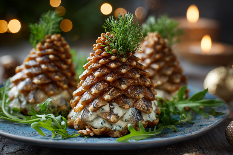 Новый год — время чудес и красивых превращений на столе. Даже привычные продукты могут стать основой для волшебства, которое поразит всех гостей. Например, простые шпроты уже много лет живут в нашем сознании лишь на кусочке хлеба. Но в этот праздник предлагаю выйти за рамки и создать настоящее съедобное украшение. Изысканные шишки, которые вызовут восторг не только вкусом, но и видом. Их секрет — в идеальном дуэте плавленого сыра и чеснока, который создает нежную, ароматную основу, а золотистая рыбка, подобно чешуйке, завершает сходство с лесным украшением. Это та закуска, которую не стыдно поставить в центр стола.